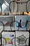 Vinden friskar på rejält ute på Hönö i Göteborgs skärgård, medan en Stena Line-färja kämpar på i motvinden. Men inne i Charlotta Folkelinds kombinerade butik och ateljé i Klåva hamn är det desto varmare. Här är det uppfyllt med konsttryck, tavlor, brickor, tändsticksaskar, grytlunderlägg, kort och mycket annat som hon har skapat.