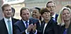 Gustav Fridolin (MP), Stefan Löfven (S), Alice Bah Kuhnke (MP), Åsa Romson (MP), Magdalena Andersson (S) och Mikael Damberg (S), vid fotograferingen av nya riksdagen i fredags.