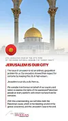”I denna stad, som vi var tvungna att lämna i tårar under första världskriget, är det fortfarande möjligt att stöta på spår av det ottomanska motståndet. Så Jerusalem är vår stad, en stad från oss”, sade Erdogan till turkiska lagstiftare under ett politiskt tal i Ankara.