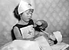 Från att ha arbetat på jordbruk blev barn några som man skulle ägna total uppmärksamhet och göra mysiga aktiviteter med. Bilden är från 1955 och visar en flicka som leker sjuksyster.