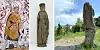 Eskil (t v) kom som missionär till Sverige och hade stor framgång i Fors, nuvarande Eskilstuna. Träskulpturen från medeltiden föreställer Botvid (mitten) och finns i Orkesta kyrka. Runstenarna användes av den kristna missionen för att göra sitt budskap känt.