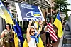 Nato har nu enats om ett nytt stort stödpaket till Ukraina. Här proukrainska demonstranter utanför Natomötet i Washington.