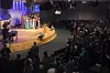 Med Israels flagga hissad både i och utanför lokalen gick det inte att ta miste på vad som stod i fokus den här kvällen, på dagen 70 år sedan den judiska staten Israel utropades. Med en festlig inramning av sång, musik och tårtkalas för de hundratals besökarna fanns också en ton av allvar.