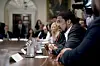 Stämningen var hjärtlig när USA:s president mötte ett 30-tal kristna ledare i Vita huset i onsdags. Foto: Andrew Harnik / AP / TT