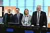 Allianspartiernas partisekreterare Acko Ankarberg (KD), Tomas Tobé (M), Maria Arnholm (L), och Michael Arthursson (C).
