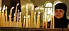 En ortodox kvinna i Syrien tänder ett ljus i en kyrka i Damaskus.