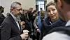 Komikern och debattören Aron Flam och hans advokat Monique Wadsted vid rättegången i Stockholms tingsrätt.