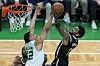 Brooklyns Kyrie Irving (till höger) kan förlora många miljoner om han inte vaccinerar sig före NBA-säsongen. Arkivbild.