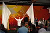 Öppningsmötet på Sommar-Oas inleddes med en parad av banér i olika färger.
