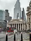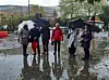 De bad på väg genom regnigt London