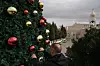 En palestinsk arbetare förbereder julgranen på Krubbans torg, utanför Födelsekyrkan i Betlehem.