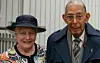 Emanuel Minos tillsammans med sin hustru Aase utanför baptistkyrkan i Ed i Dalsland där han höll sin första predikan. Då var han fem år gammal.