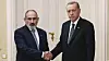 Omvärlden försöker medla i konflikten. Här träffar Armeniens premiärminister Nikol Pasjinjan Turkiets president Recep Tayyip Erdogan (t h) i Prag på torsdagen.