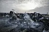 Förödelsen är stor efter den brand som bröt ut i ett palestinskt tältläger till följd av ett israeliskt flyganfall mot två Hamasledare.