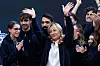 Giorgia Meloni hyllas av högerpolitiker, men även av vissa socialdemokratiska makthavare. (Bilden är från ett högerpolitiskt konvent i Rom.)