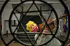 En utklädd musikant spelar fiol under firandet av Purim i en synagoga i den rumänska huvudstaden Bukarest. Foto: Andreea Alexandru/AP/TT