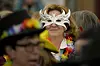 En av flera utklädda vuxna ler mot kameran i en synagoga i den rumänska huvudstaden Bukarest under måndagens purimfirande. Foto: Andreea Alexandru