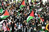 Stora grupper människor demonstrerade i helgen mot Israels bombningar av Gaza, och trotsade därmed förbudet mot att inte fler än åtta personer får delta i en allmän samling.