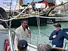 Forskaren Sameh Egyptson, t v, gästade ett av Hotspot-avsnitten som spelades in i Visby, på missionsbåten Elidas däck. T h programledaren Marco Strömberg.