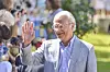 Kung Carl Gustaf vinkar till de som samlats på Solliden, Öland, där kronprinsessan Victoria tar emot hyllningar från allmänheten på lördag förmiddag den 15 juli 2017, dagen efter att hon fyllde 40 år.