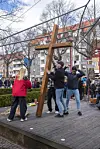 Världen idag har rapporterat om en rad olika gudstjänster i städer och på torg under påskdagen. Redan på långfredagen hölls korsvandringar på olika håll. I Stockholm utgick vandringen från Clara kyrka som var arrangör. Längs vägen till Sergels torg stannade man till vid olika stationer, bland annat Utrikesdepartementet. Där bad man för politiska makthavare och vid ytterligare två stationer i innerstan gällde bönerna Guds församling samt Ukraina och Sverige.
