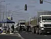 Lastbilar med humanitär hjälp på väg in i Gaza i måndags nära Ashkelon i södra Israel. Gränsövergångarna vid Kerem Shalom och Erez stängdes i tisdags efter granatbeskjutning från Gaza.