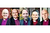 Fr.v.t.h.: Martin Modéus, Johan Dalman, Mikael Mogren, Karin Johannesson och Fredrik Modéus går vidare som kandidater i ärkebiskopsvalet den 18 maj. Den 22 april klockan 10-16 deltar de i en frågestund i Uppsala, som kommer att sändas direkt och offentligt på internet.