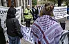 propalestinska sånger, iscensatt demonstrationer samt av en imam fått sjalar med