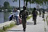 Indiska soldater patrullerar vid sjön Dal i Srinagar i indiska Kashmir. Tidigare i veckan sköts 26 människor till döds i området.