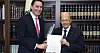 USA:s sändebud, Amos Hochstein (t v) och Libanons president Michel Aounhar (t h) med avtalet.