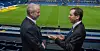 Fotbollsklubben Chelseas ägare Roman Abramovitj, till vänster, samtalar med Israels president Isaac Herzog på Stamford Bridge i London.
