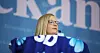 Julia Kronlid talar under politikerveckan på Spånga IP i Järva.