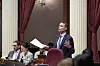Kaliforniens demokratiske senatsledare Mike McGuire under debatten inför omröstningen i Kaliforniens senat.
