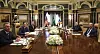 USA och Ryssland möttes i Suadiarabiens huvudstad Riyad. Till vänster i bild sitter den amerikanska delegationen: sändebudet Steve Witkoff, utrikesminister Marco Rubio och den nationella säkerhetsrådgivaren Mike Waltz. Till höger sitter den ryska delegationen: Jurij Usjakov och utrikesminister Sergej Lavrov.