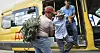 En äldre man på ryskannekterade Krim får hjälp att lämna ett område nära en av platserna där det ägde rum en explosion tidigare i veckan.