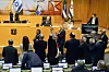 Israels säkerhetsminister Itamar Ben-Gvir (i mitten) firade med champagne i knesset efter att lagen om dödsstraff röstats igenom.