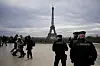 Fransk militärpolis bevakade Eiffeltornets omgivningar hårt efter lördagens dödliga knivattack.