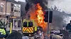 En polisbil antändes när en grupp attackerade räddningsmanskap i Southport, England