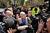 Londons förre borgmästaren Ken Livingstone omringad av media i Westminster, London, förra veckan. Oppositionspartiet Labour stängde av Ken Livingstone efter dennes uttalanden om att Hitler var en sionist.