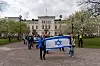 Ett hundratal Israelvänner marscherade från Sofiakyrkan till Hoppets torg mitt i Jönköping, där en manifestation för Israel hölls, här passerar de stadens rådhus.