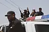 Syriska regeringsstyrkor (närmast kameran) blockar beduiner från att gå in i staden Sweida.