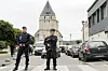 Fransk polis utanför kyrkan där gisslandramat och knivmordet ägde rum. Foto: Francois Mori / AP / TT