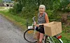 Med cykel delar Mona Lundin ut flyers till söndagens gratiskonsert i hembygdsgården.