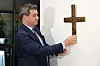 Bayerns ministerpresident Markus Söder (SCU) sätter upp ett kors på regeringskansliet efter ett beslut om att alla myndigheter i den tyska förbundsstaten ska ha synliga kors på väggen.