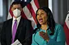 San Franciscos borgmästare London Breed (till höger) utlyste på torsdagen nödläge gällande apkoppor. T.v. hälsodirektör Grant Colfax.