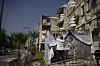En judisk man i staden Kiryat Shmona, nära gränsen till Libanon, gör i ordning sin lövhydda inför firandet av lövhyddohögtiden.