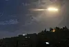 På denna bild från den syriska officiella nyhetsbyrån SANA visas vad som uppges vara israeliska missiler i luften i närheten av Damaskus internationella flygplats.