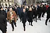 Poliser kantade gatorna när nio ministrar och flera partiledare gick en kippavandring i centrala Stockholm på onsdagen. På plats fanns bland andra statsminister Ulf Kristersson (M), S-ledaren Magdalena Andersson, L-ledaren Johan Pehrson, V-ledaren Nooshi Dadgostar och MP-språkröret Märta Stenevi. Även jämställdhetsminister Paulina Brandberg (L), infrastruktur- och bostadsminister Andreas Carlson (KD) och utrikesminister Tobias Billström (M) deltog.