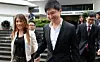 Kong Hee tillsammans med hustrun Sun Ho utan för rätten i Singapore.