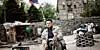 En pro-rysk aktivist läser på torsdagen en bok på barrikaden som omger Donetsks administrationsbyggnad.